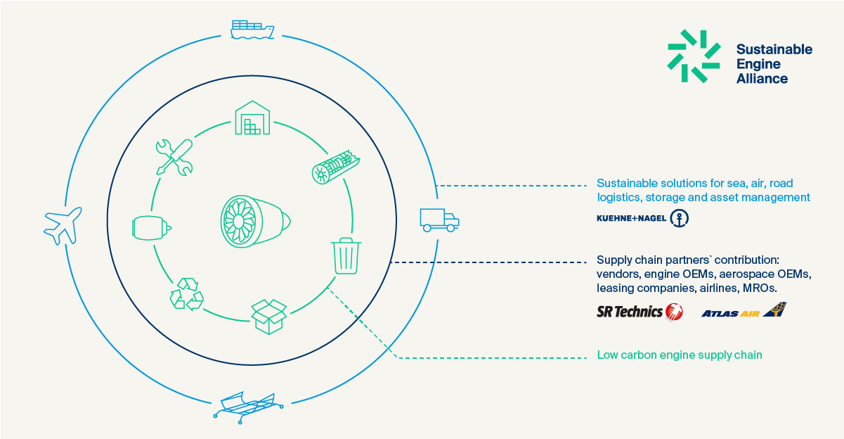 Kühne+Nagel, Atlas Air und die SR Technics Group schließen sich zusammen, um neue Standards für kohlenstoffarme Lieferketten für Flugzeugtriebwerke zu setzen