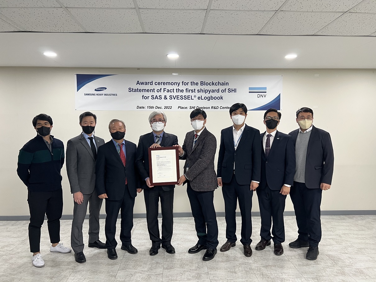 Samsung Heavy Industries (SHI) becomes the first shipyard certified by DNV in applying blockchain technology for its Samsung Autonomous Ship (SAS)
